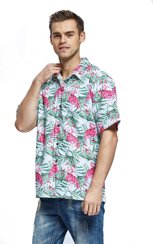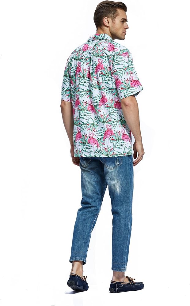 Hawaii Hangover "Flamingo in Love Collection"! 100% Cotton, comfortable, Quality Made! Pre-Shrunk, Coconut Buttons, One Matching Pattern Pocket on Left Chest