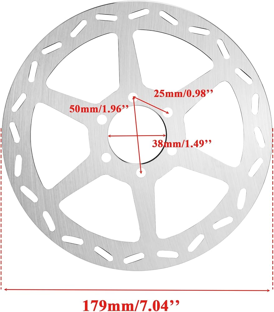 Size: D. of Disc Plate is 180 mm/7.08'', I.D. is 38 mm/1.49'', the Distance of Mounting Holes is 25 mm/0.98''