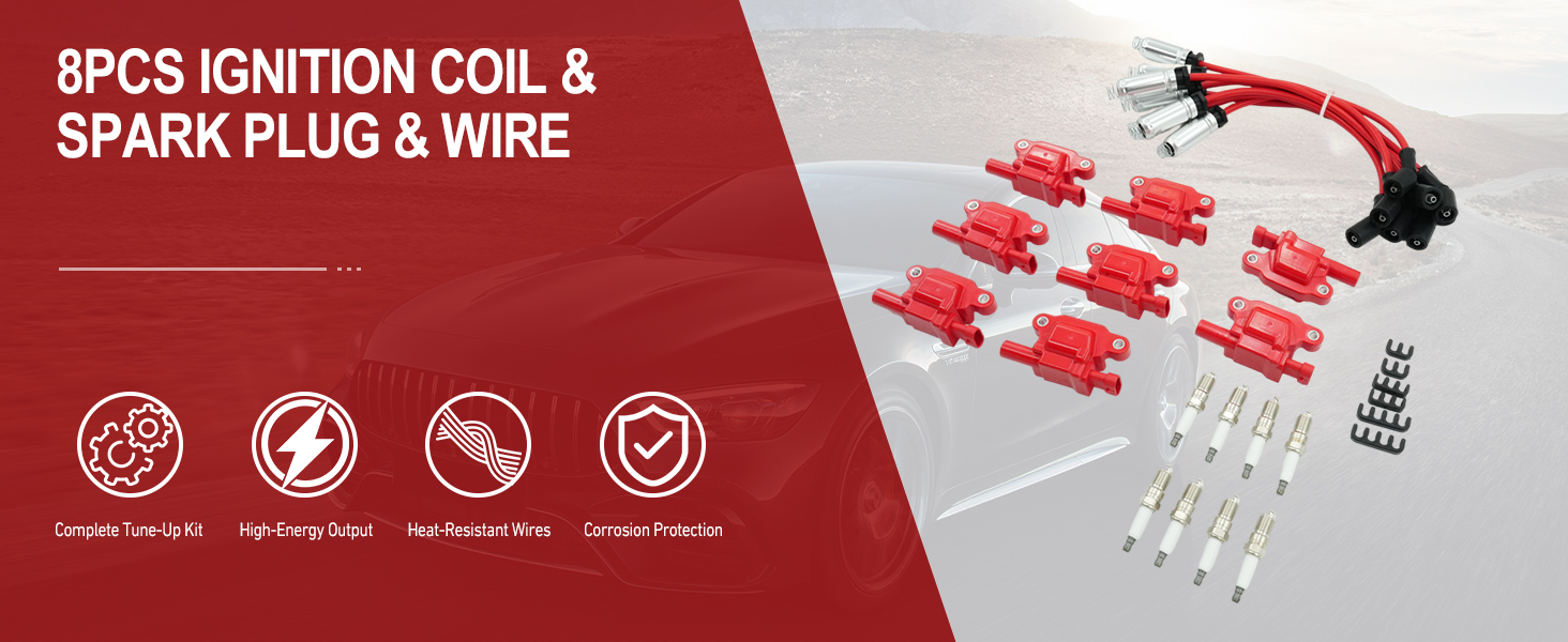 Spark Plugs and Coil Packs Kit OE Numbers: Direct replacement for ignition coils 12570616, UF413, E893, D510C, UF-413, 12611424, 8125706160, wires 12192195, 9748GG, 748GG, 12622553, 88862397, 88862385, 12192192, 748UU, 12656210, and spark plugs 19299585, 41962, 41-962