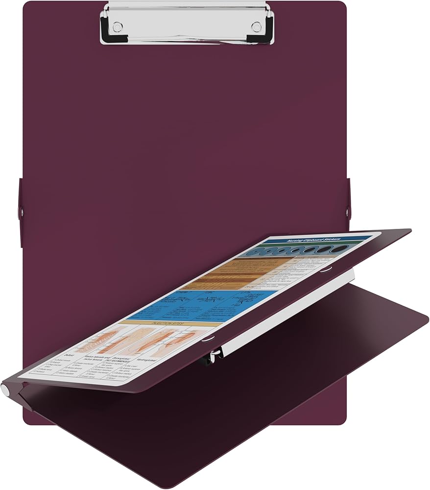 Nursing Clipboard with Nursing and Medical Edition Cheat Sheets Nursing School Essentials, Aluminum Foldable Nurse Clip Boards Essential Accessory for Efficient Patient Care (Wine Red)