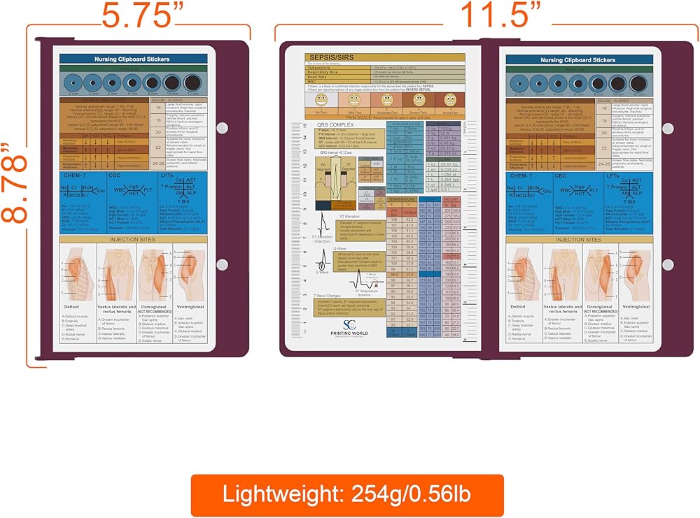 Nursing Clipboard with Nursing and Medical Edition Cheat Sheets Nursing School Essentials - Aluminum Foldable Nurse Clip Boards Essential Accessory for Efficient Patient Care