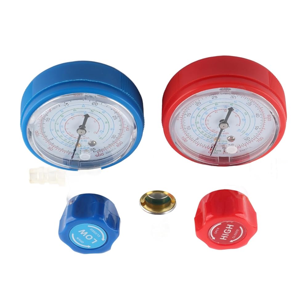 : Featuring easytoread-- white background dials with black pointers, this refrigerant charging tool provides accurate pressure readings. builtin- valves allow for even , making it simple to open and close during diagnostics or charging procedures.
