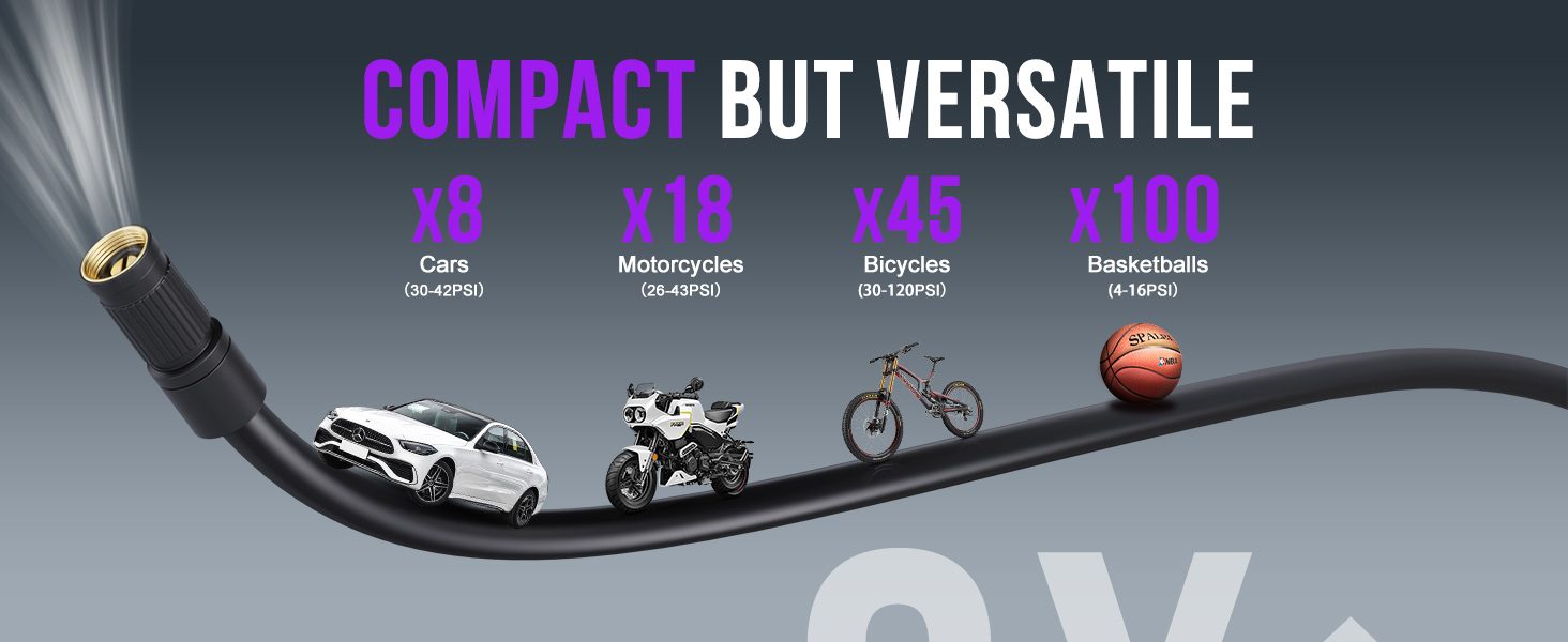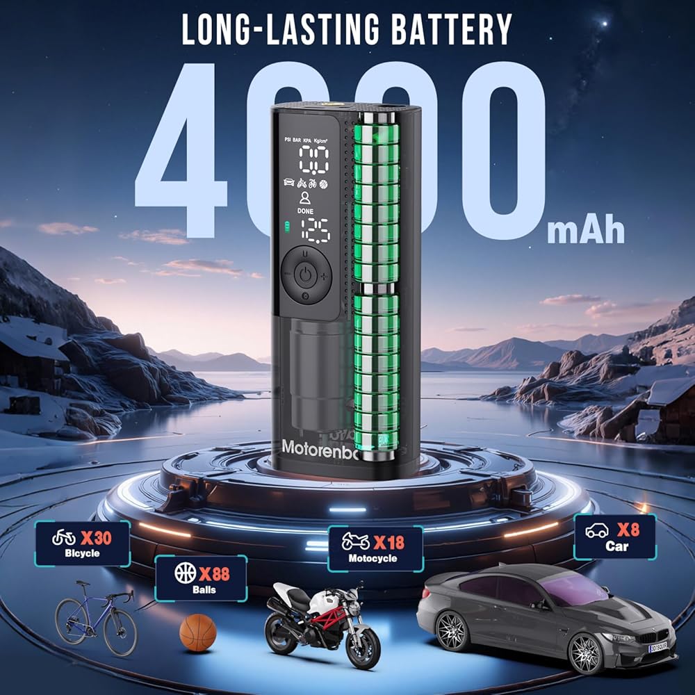 Note: Battery performance depends on several factors - Tire size and type: Inflating larger or higher-pressure tires will drain the battery faster. Temperature: Cold weather reduces battery efficiency. Proper charging: For optimal battery performance, it's recommended to fully charge the pump before each use. We provide 24-hour online support and 3-year warranty on this air pump, if any questions, pls feel free to contact us.