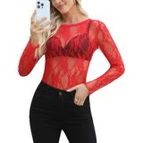 Sheer Lace Design – This women's mesh top features elegant floral lace with a see-through design, highlighting your curves while keeping a classy and feminine look.