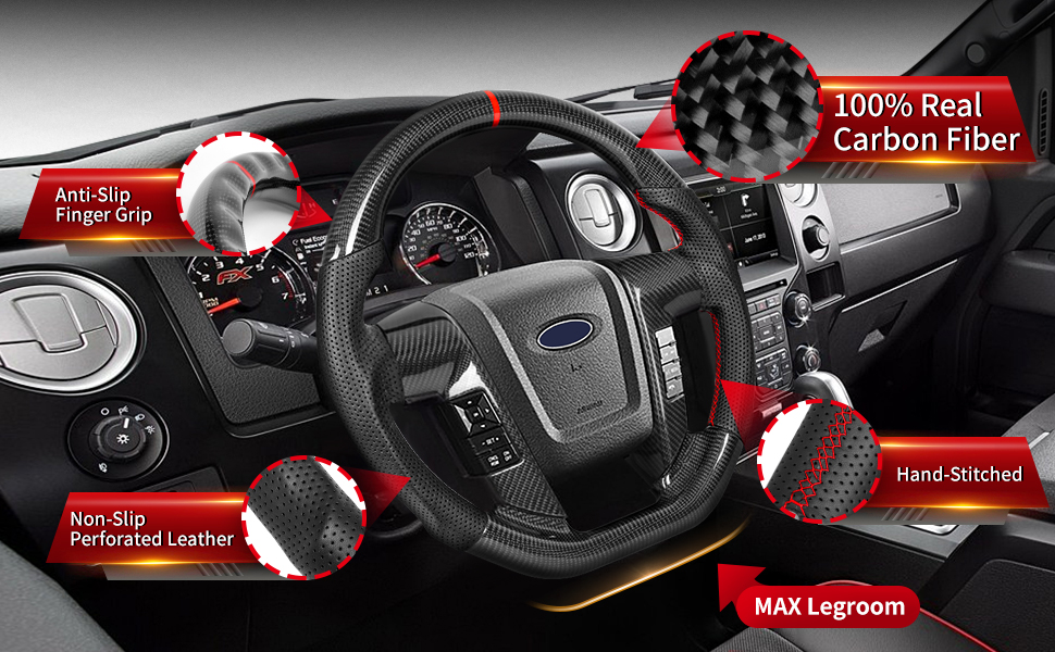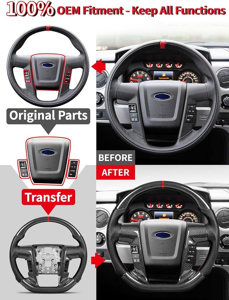 [Ultimate Carbon Fiber Upgrade Kit] Unlike standard listings, this is a Complete Renovation Kit for Ford F-150 (2009-2014) and SVT Raptor. Package includes the Real Carbon Fiber Steering Wheel PLUS a pair of matching Real Carbon Fiber Button Bezels. We also provide carbon fiber Blind Plugs: if your truck has no buttons or single-side buttons, simply use the plugs for a seamless, high-end factory look.