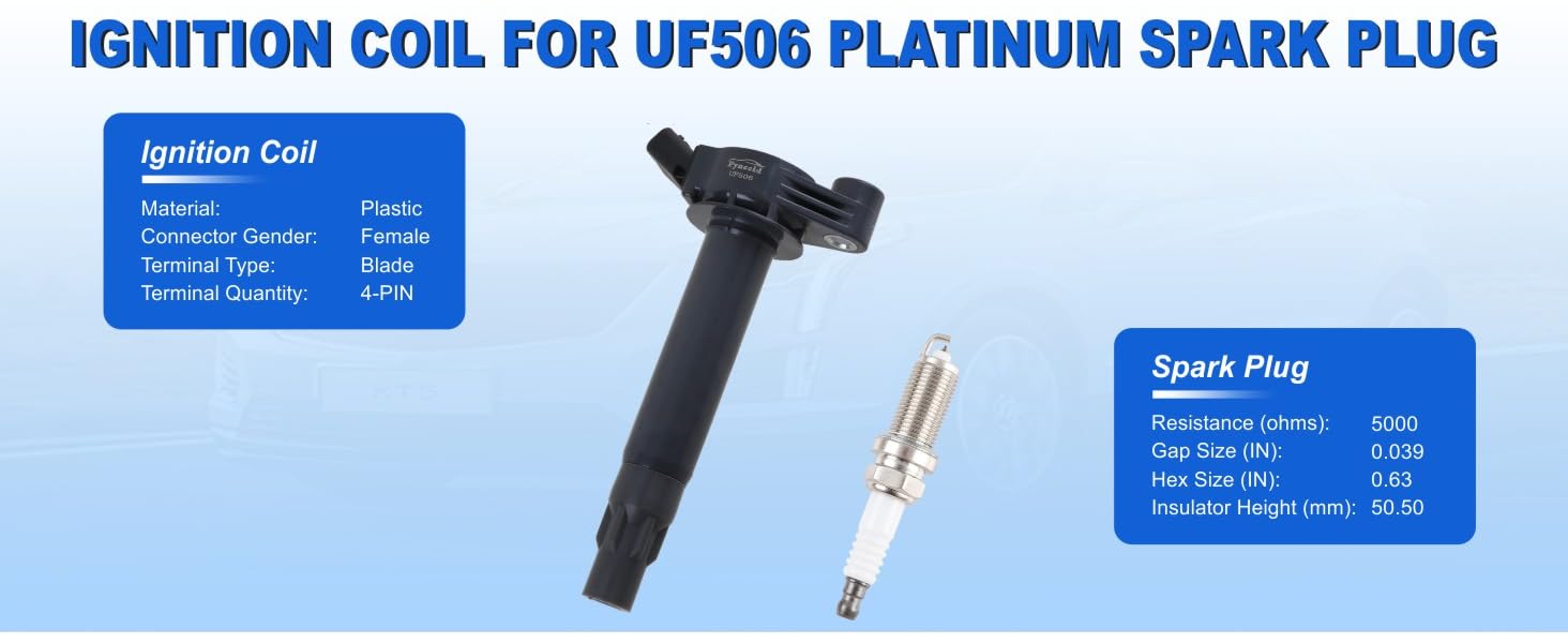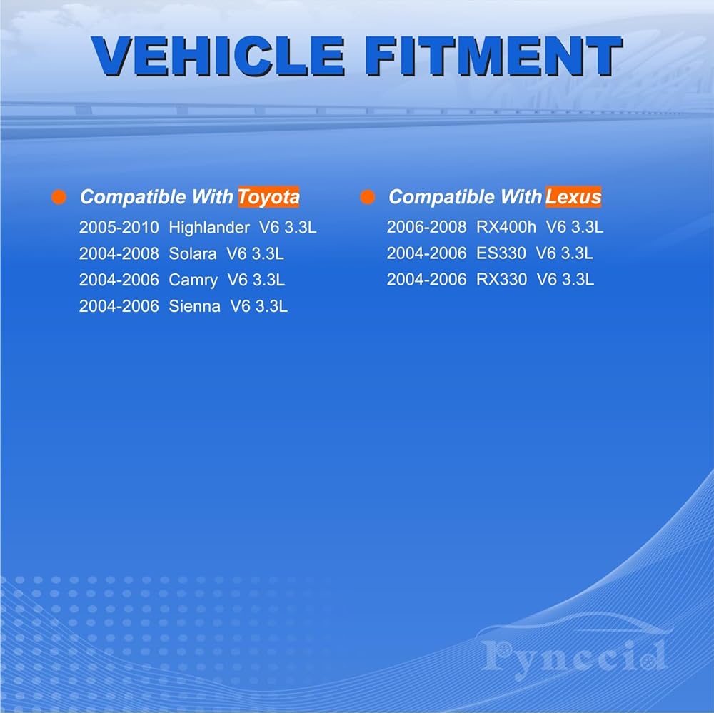 Precise Vehicle Compatibility - This Pynccid ignition coil and spark plug set delivers perfect fitment for 2004-2010 Toyota and Lexus vehicles with 3.3L V6 engines including Highlander, Sienna, Solara, Camry, ES330, and RX330. Direct OE replacement for OEM numbers UF506, C1452, 5C1442, and UF430. Each component is precision-engineered to match factory specifications, ensuring seamless integration with your vehicle's ignition system without any modifications required.