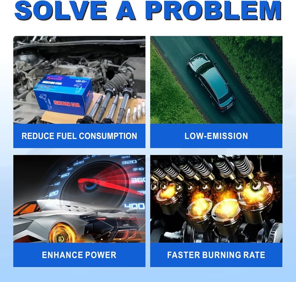 Enhanced Ignition Performance - Experience high performance with these ignition coils that deliver 15% stronger spark energy than standard OEM units. The advanced design features highly conductive copper windings and high-dielectric epoxy encapsulation that ensures stable spark delivery across all RPM ranges. Eliminates common issues like misfires, hesitation, and rough idling while significantly improving throttle response and acceleration performance.
