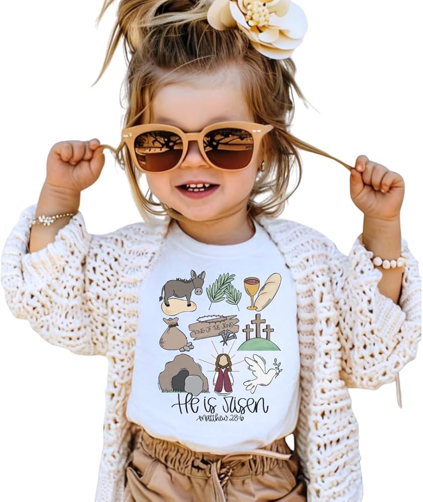 He is Risen Kids Shirt Christian Easter Faith Based Tee Matthew 28 6 Resurrection Graphic Tee for Boys and Girls Sunday Outfit Easter Basket Gift White