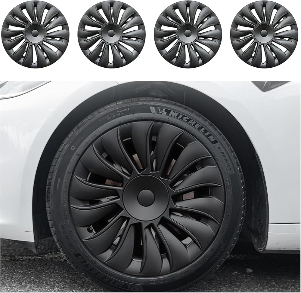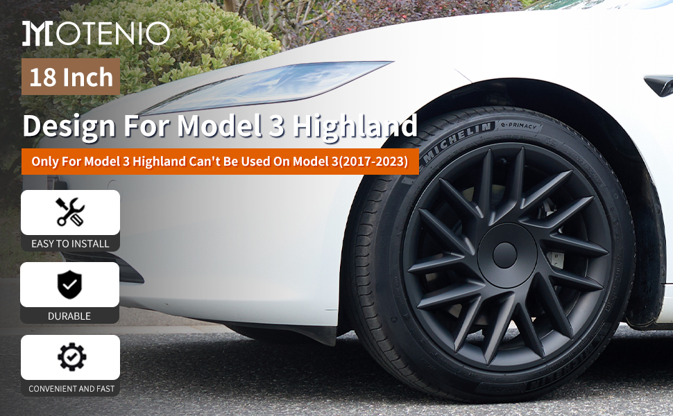 4PCS 18 inch Matte Black Model 3 Highland Hubcap : MOTENIO wheel cover for tesla model y are specially designed for Tesla Model 3 Highland to provide a perfect fit and enhance the overall appearance of your vehicle. With a stylish design, these hubcaps will make your Tesla look more personalized and stand out from the crowd.