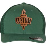 This Custom Leather Patch Trucker Hat Flex Fit 6511 is a great promotional item for any business. The 55/43/2 polyester/cotton/spandex blend fabric makes it comfortable to wear, while the structured, six-panel, mid-profile, sewn eyelets and permacurv visor with silver underbill provide a classic look. The 100% full-grain vegetable-tanned leather patch is engraved with your logo, custom text, or image, creating a one-of-a-kind item that will make your business stand out. The patch is dyed, cleaned, and placed on the hat by our team, ensuring a high-quality product that will last for years.