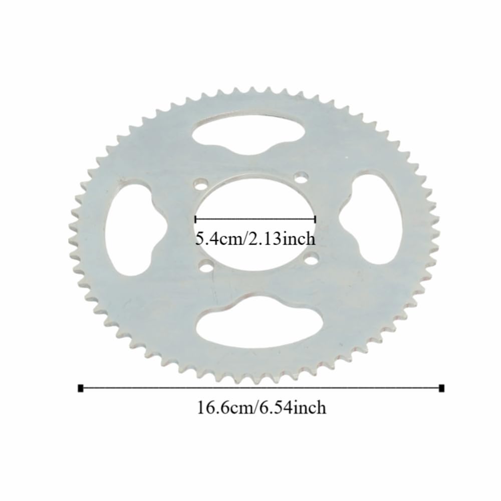T8F 64T steel sprocket delivers reliable power transmission for 47cc and 49cc mini motorcycles, mini dirt bikes, ATVs, and go-karts.