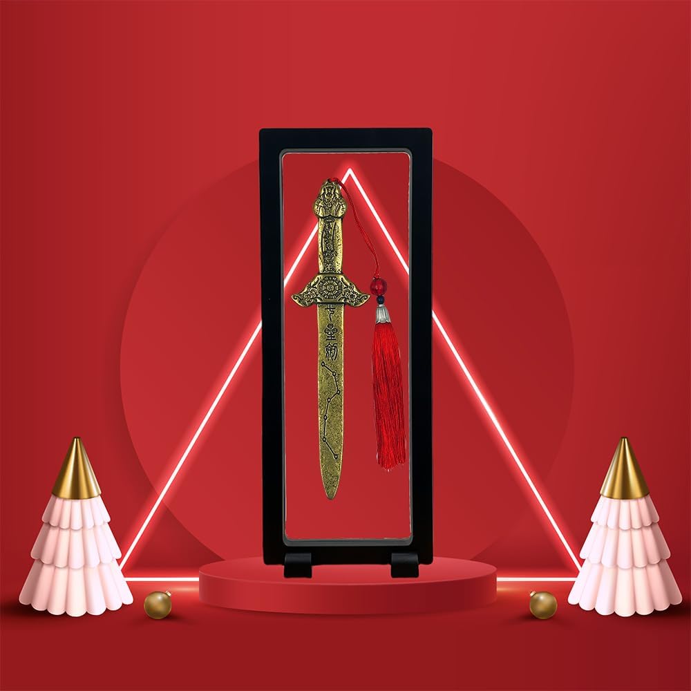 RCWG Chinese Feng Shui Sword. Seven-Star Antiquing Protection Sword, I Ching Good Luck Sword with Red Tassel for Wealth, Success, Health, Safety. Home Office Decoration, Feng Shui Decor