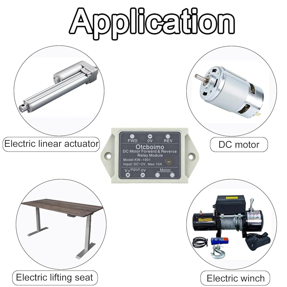 12V MOTOR REVERSING CONTROL - Designed for DC motors, this relay controller provides simple forward and reverse switching, ideal for linear actuators, winches, solenoid relays, pumps, and other 12V motor applications.