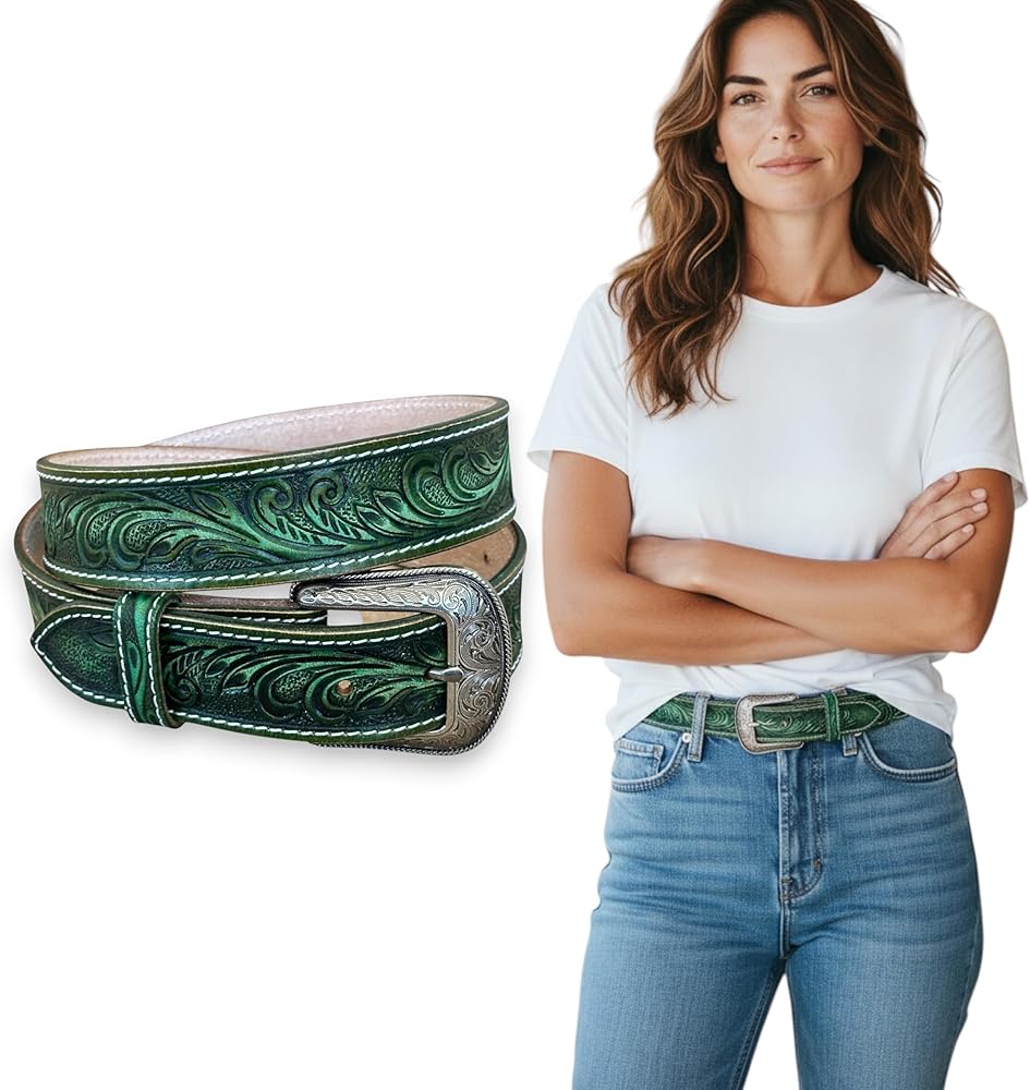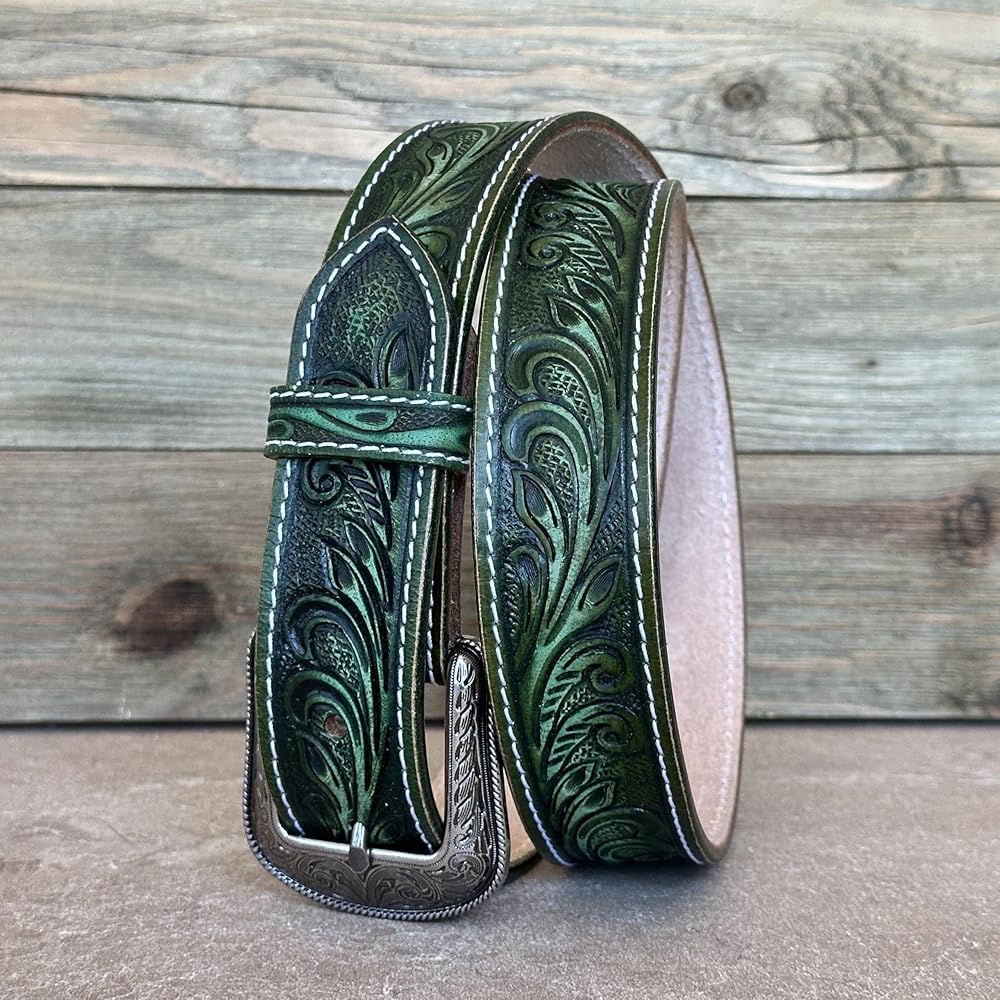 Our full grain one piece leather western belt seamlessly ties together any outfit. Made from top-quality genuine leather, each belt is built with durability and style. The tooled floral details and unique colors add a western character to any outfit, ensuring you stand out from the crowd with your cowgirl style. With a comfortable fit that adjusts to you, this genuine leather belt is more than an accessory—it's an essential. Hand-painted with unique colors to choose from.
