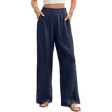 Experience the epitome of comfort and style with our bliss relaxed elastic waist women linen palazzo pants.