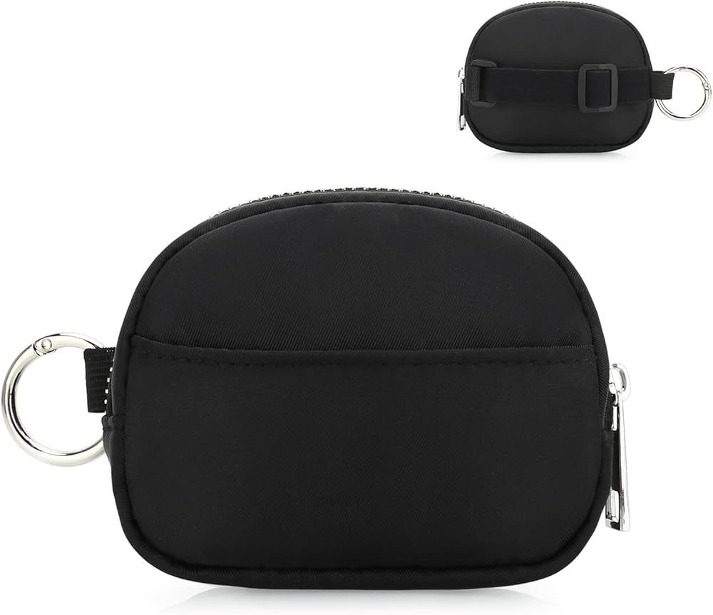 Mini Wristlet Keychain Wallet RFID Blocking Pouch with Adjustable Strap, Small Dual Layer Zipper Coin Purse Card Case, Hands-Free Compact Organizer Bag for Women Men Sports Casual, Black