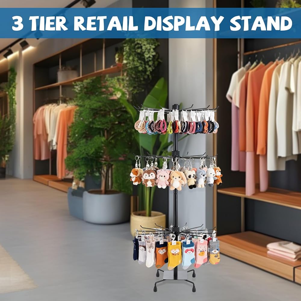 【Oungy 2 Pcs Rotating Display Stand 3 Tiers Spinning Display Stand with Hooks Jewelry Display Rack for Necklace Earrings Key Rings Vendor Events 】
