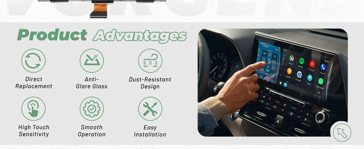 【Enhanced Performance】The upgraded radio screen display glass features anti-glare coating, excellent sealing to prevent dust ingress, and high touch sensitivity for accurate, smooth operation in daily use.