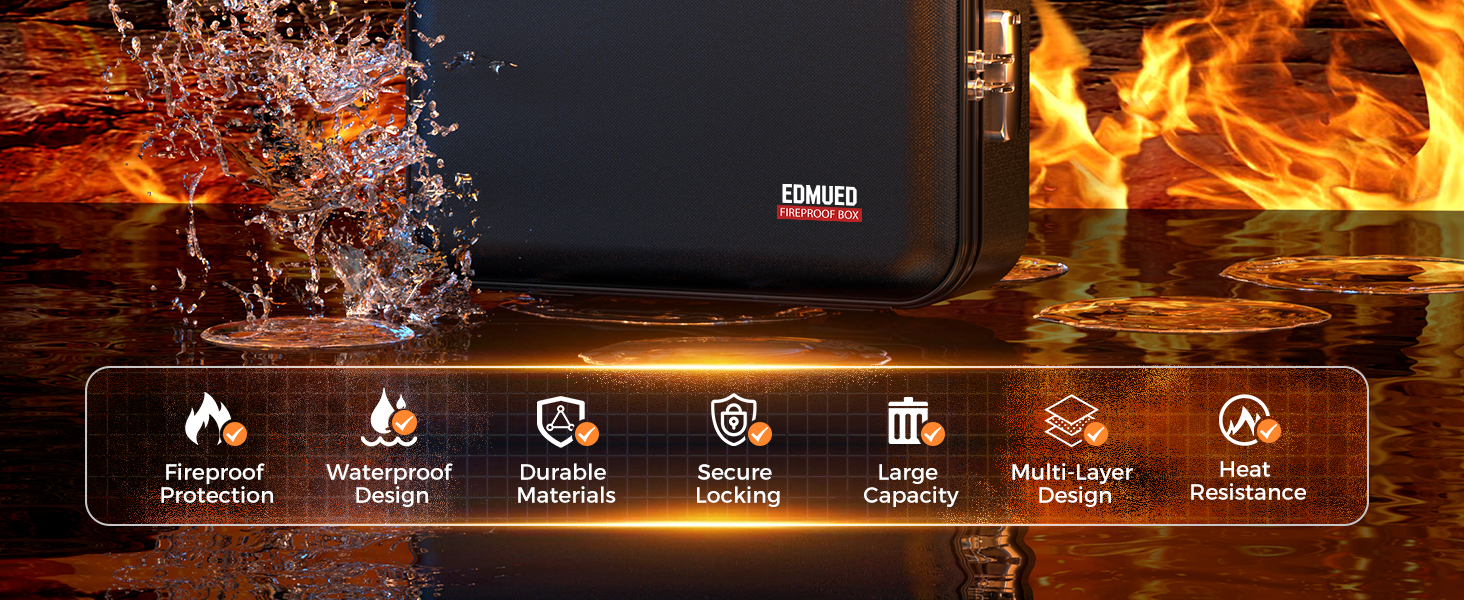 Durable Hard Shell Design: This innovative fireproof document box combines fireproof materials with a rigid hard shell design, offering superior fire protection. keep valuable documents safe from damage.