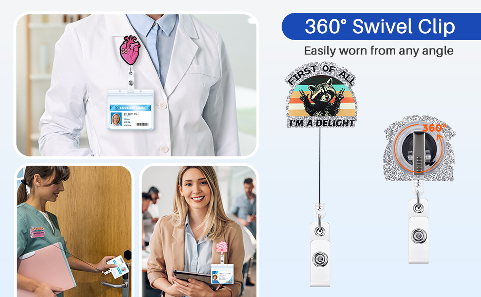 Retractable Cord & 360° Swivel: Durable high-quality acrylic badge reel with strong alligator clip. Smooth retractable 24" cord and 360° swivel keep ID badges or key cards secure and easily accessible for nurses and healthcare workers.