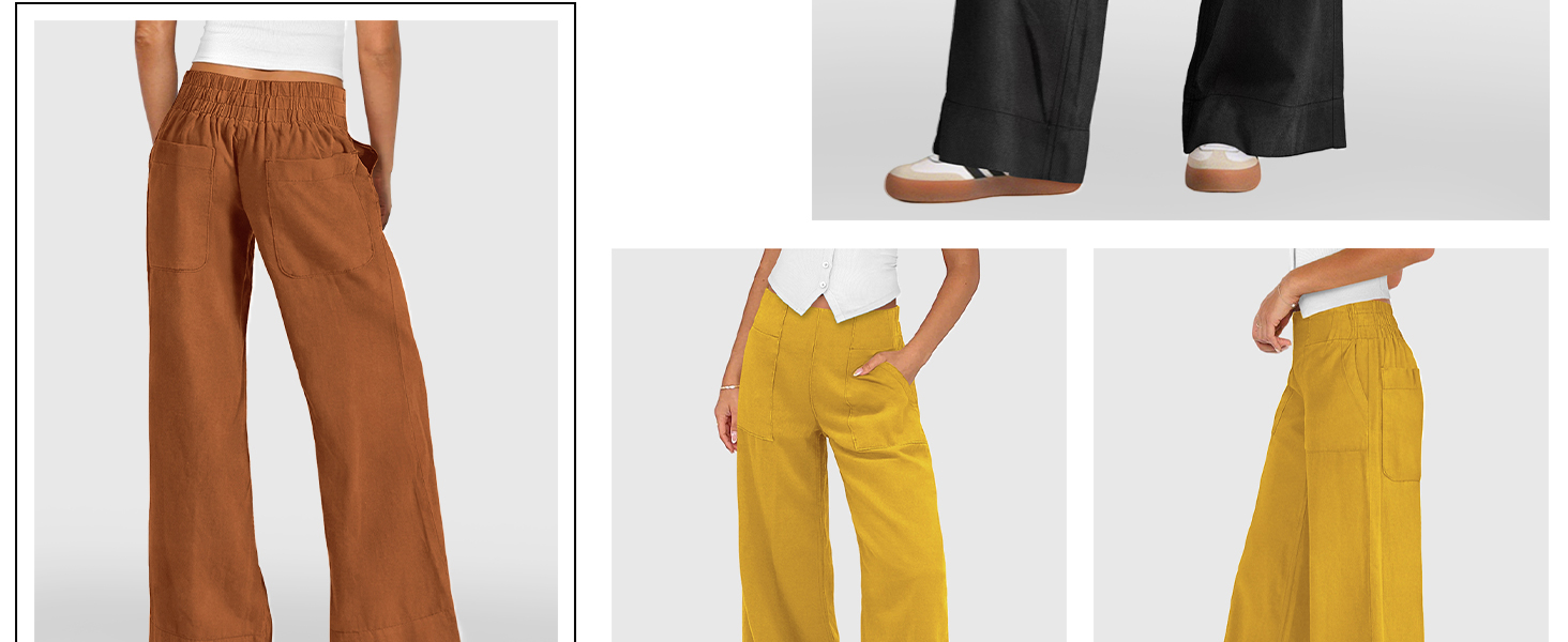 【Fabric】These wide leg pants for women are made from a stretchy chino fabric that is soft yet structured, breathable, and stretchy, making them comfortable to wear and suitable for any season.