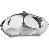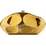 Unique Women Evening Bag: Features four geometric concave patterns with a metallic luster and a magnetic enamel button closure, making this formal evening purse a modern, fashion-forward statement piece.