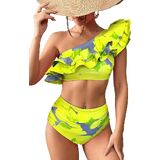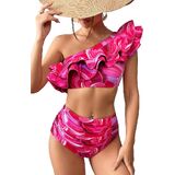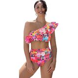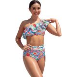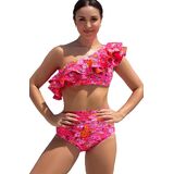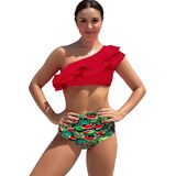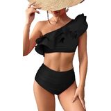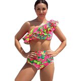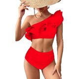 - Ruffle One Shoulder High Waisted Bikini is a good choice for your vacation ,summer beach, swimming pool, bathing, resorts, bikini party.