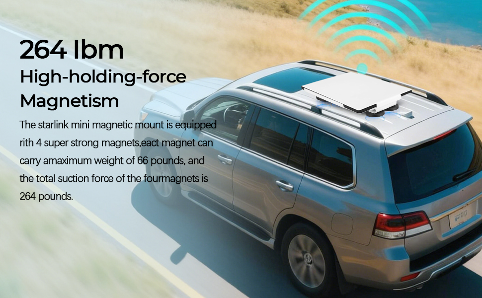 【Ultra-Secure Quad-Magnet Hold】Featuring four ultra-strong neodymium magnets with a total vertical hold force of 264 lbs, this mount keeps your Mini firmly anchored to ferrous surfaces like car roofs and iron shelves, ensuring maximum stability even in strong winds during high-speed travel.
