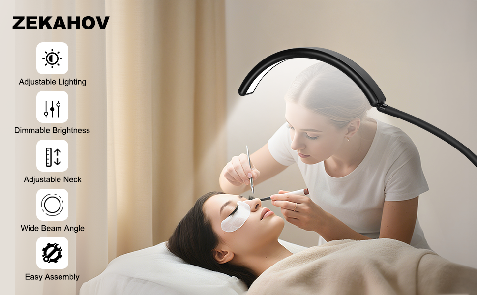 【360° Flexible & Stable Gooseneck】Aim light exactly where you need it. The ultra-flexible gooseneck bends to any position for tasks like eyelash extension, nail art, or craft projects, and holds steady without drooping. Your light, your angle, no compromises.