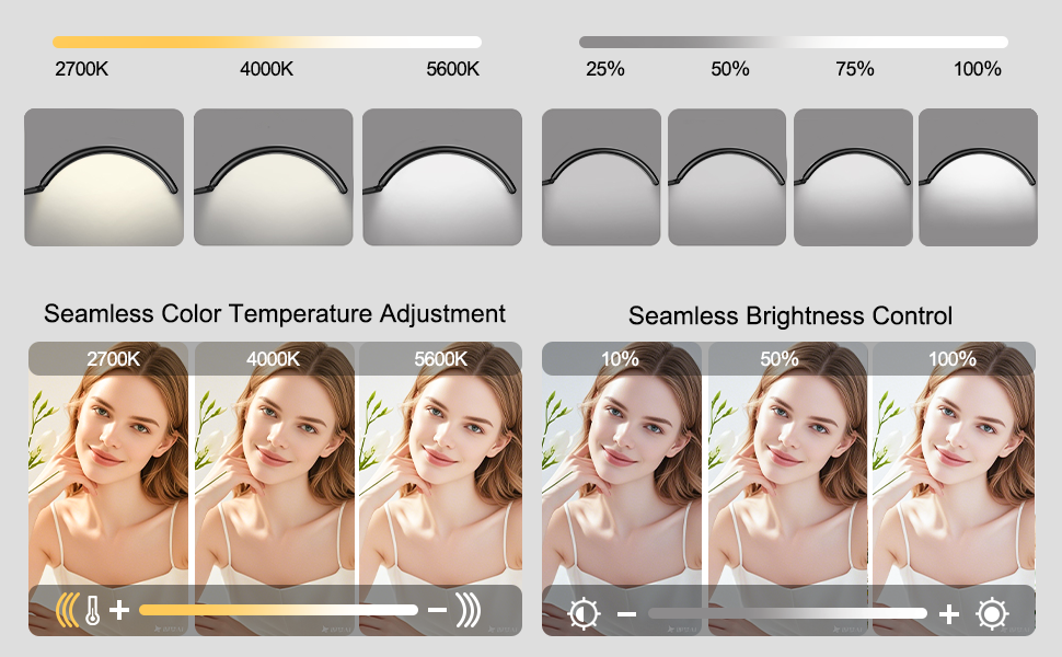 【Total Light Control: 2700K-5600K & Dimming】Easily cycle through light modes (2700K-5600K) and brightness levels with the simple in-line controller. A few clicks are all it takes to customize the perfect lighting for any beauty task, craft project, or mood.