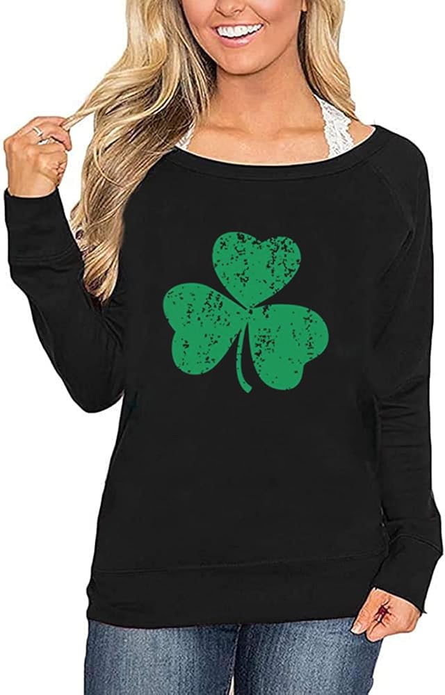 saint patrick's day outfit for women: Casual long sleeve st patricks day shirt women, Funny irish lucky sweatshirt style, with cute green shamroch and clover Graphic, Great for your st pattys day costume, as your family womens st patrick's day sweatshirt