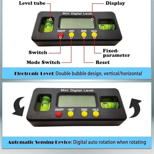 1. Dual-bubble level for simultaneous horizontal and vertical readings.