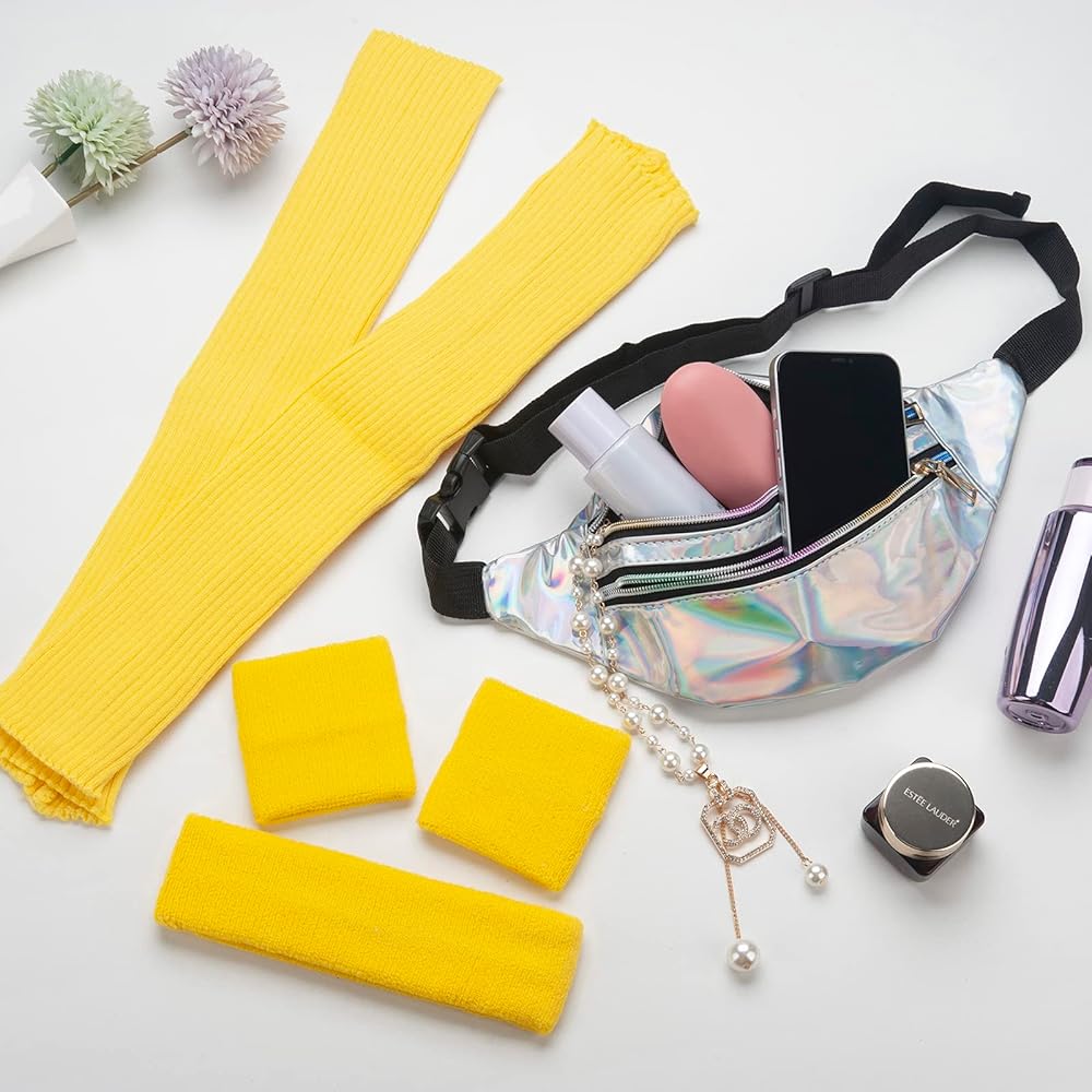 Black Leg Warmers for Women 80s Costumes Accessories Holographic Fanny Pack