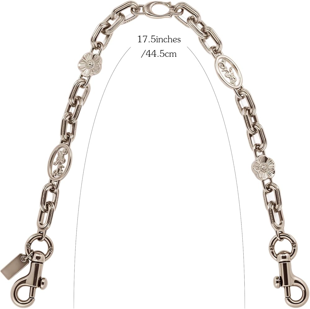 【Super Versatile & Stylish Bag Chain Charm】This vintage bright silver chain is a total style workhorse! It's a bag charm and purse charm that does heaps. Use it as a Bag chain extender, turn your regular handbag into an armpit-style or crossbody in no time. And it's not just for bags! Clip it on your jeans, or hook it to your wallet as a wallet chain or wallet charm. At 44.5cm/17.5inches, weighs 91grams, this gold bag charm adds a fun, personal touch to your bags, wallets, or Jeans.
