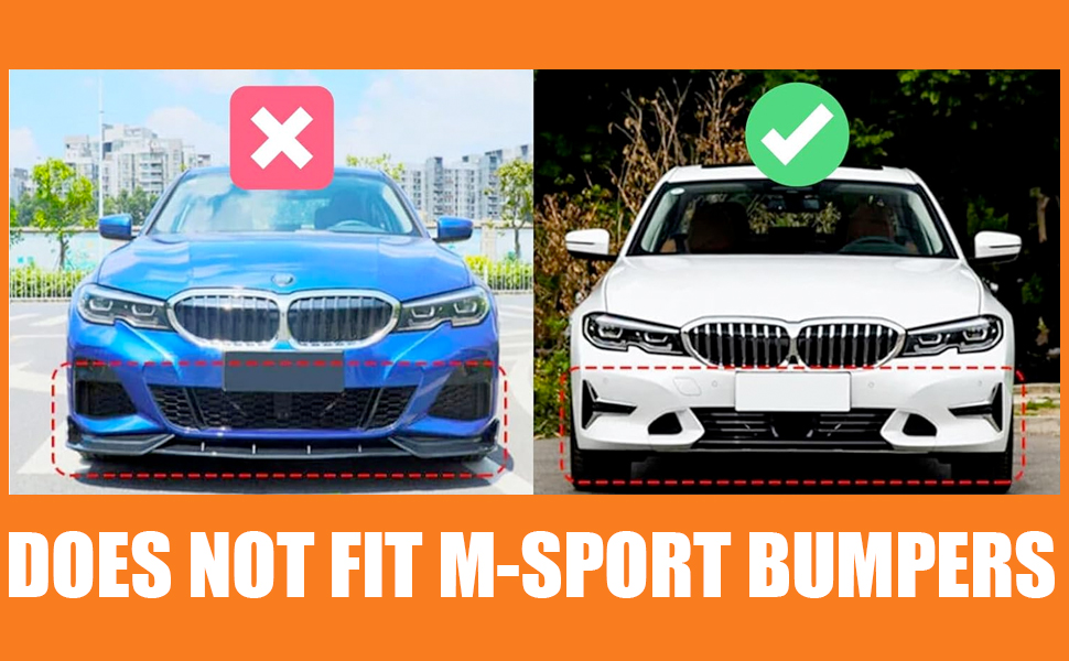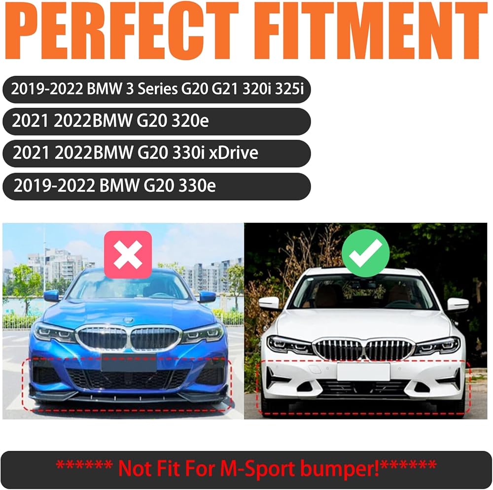 Perfect Fitment: Front lip fit for 2019 2020 2021 2022 BMW 3 Series G20 G21, including 320i 325i 320e 330i xDrive 330e 4-Door Sedan. It does not fit M-Sport bumpers, so check your bumper type first to avoid a mismatch
