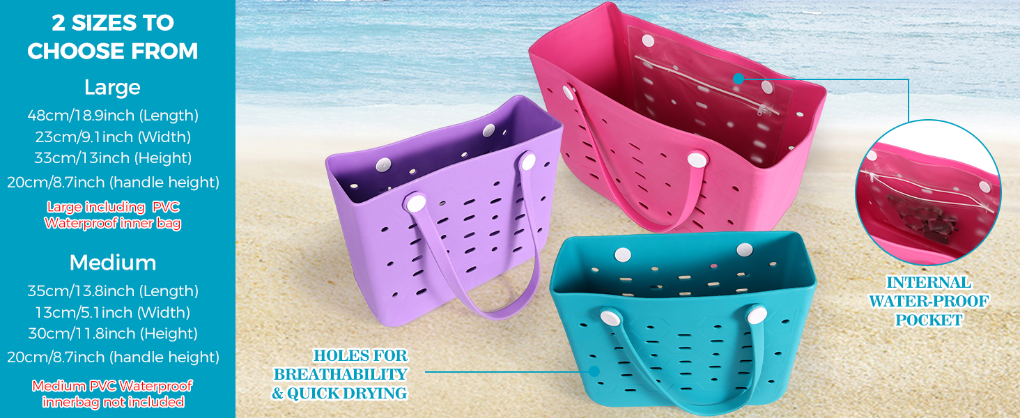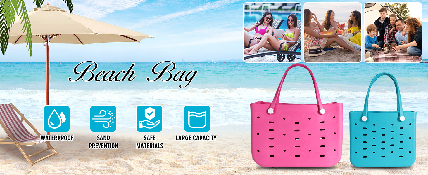 Unique Design: The whole body is made of rubber material. The bumps on the bottom of the large beach tote are designed to be non-slip. The reinforced base adds stability to the washable bag, allowing it to remain standing. You no longer have to fret over well-prepared items falling to the ground.