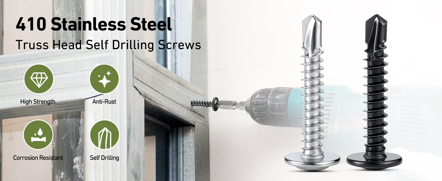 Modified Truss Head Design: The wide, flat truss head distributes pressure evenly across surfaces, eliminating the need for separate washers and preventing damage to workpieces. Stainless steel self tapping screws with large low profile head for secure wood connections