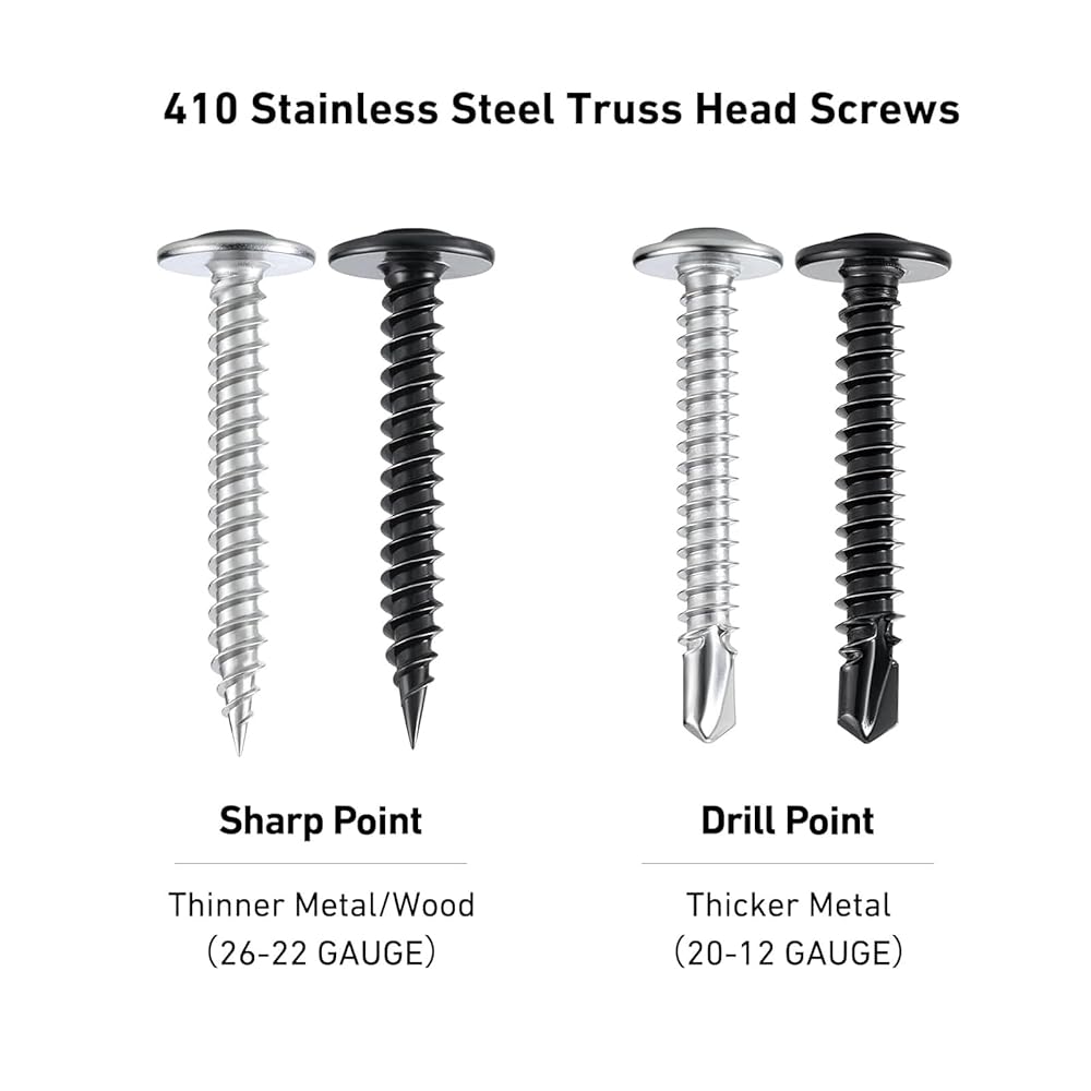 Versatile Applications: With a sharp point and deep threads, these stainless steel wood screws drive in smoothly and grip firmly, saving time and effort. Ideal for woodworking, DIY projects, furniture, cabinets, appliances, thin metal, and plastic assemblies, perfect for both professional and home use, 26-22 gauge