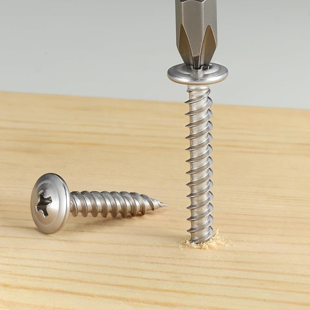 Self Tapping Pointed Screws: With sharp self-tapping point and deep, precision-cut threads, these stainless wood screws penetrate wood, plastic, and thin metal quickly and securely without pre-drilling. The clean threads provide superior holding power and prevent slipping or deformation during installation