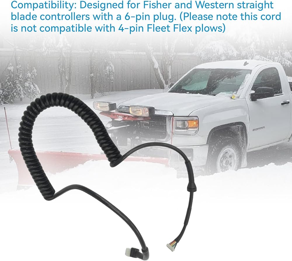 【Compatibility】: Designed for Fisher and Western straight blade controllers with a 6-pin plug. (Please note this cord is not compatible with 4-pin Fleet Flex plows)