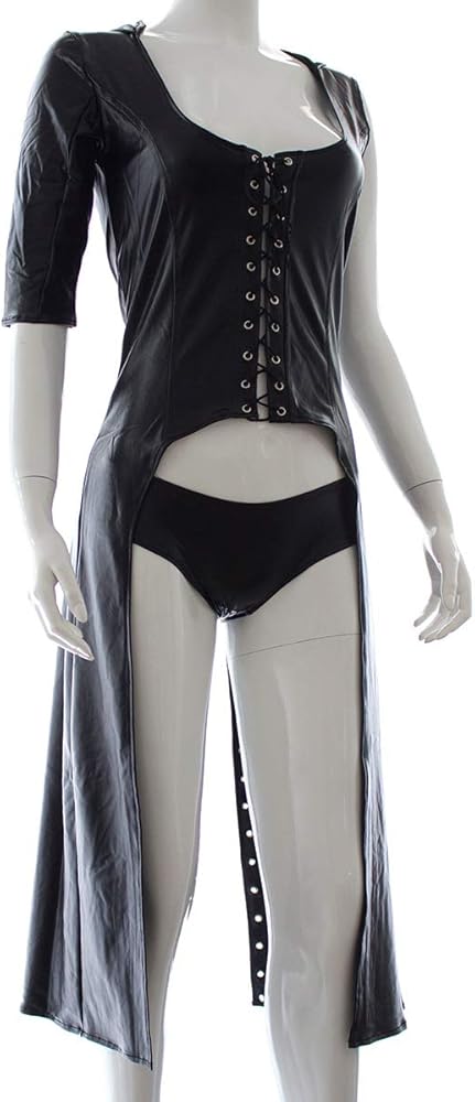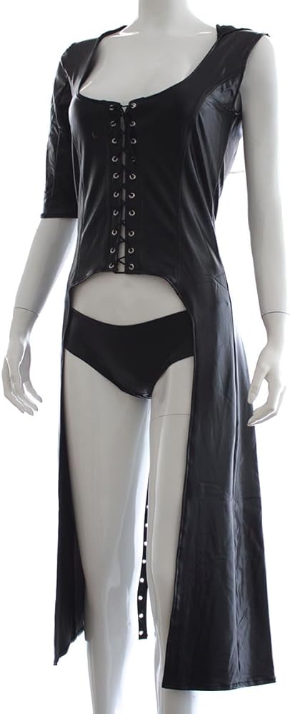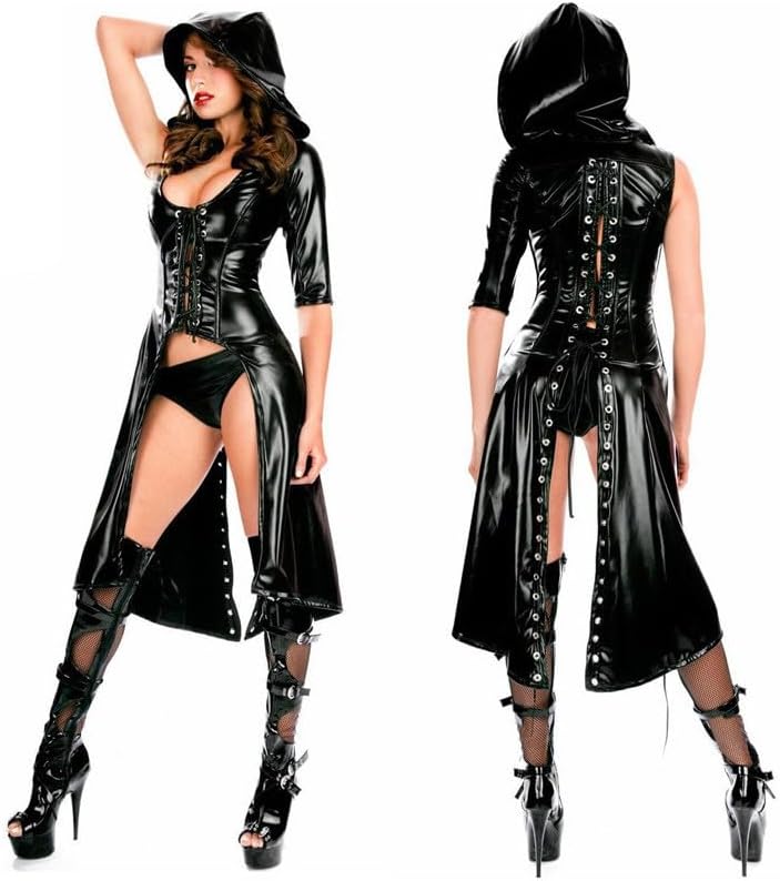 Women's Witch Black Mask Cosplay Faux Leather Sexy PU Cape Cloak Lingerie Costume Set One Size Adjustable Black