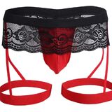 Design: Men's lingerie lace sissy men underwear, crossdressing sissy lace garters panties underwear for men, men lace underwear sheer lace bulge pouch briefs sissy panties, men sexy lingerie lace panties with garter, elastic low waisted lace t-back underpants thongs for men, sheer see through lace pouch, with garters band.