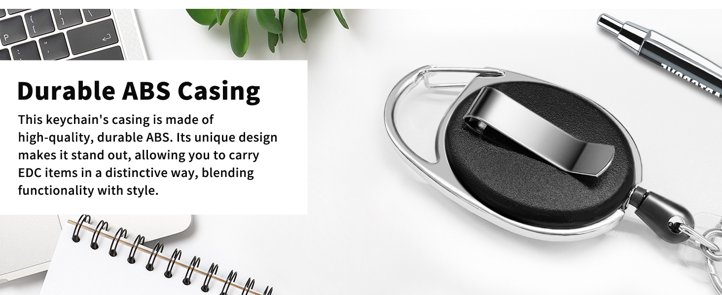 【Retractable Cord Design】: The badge reel keychain features an innovative retractable cord design, which can extend up to an impressive 24.4 inches (approximately 62 centimeters) at its maximum length. This makes it an ideal choice as a versatile retractable badge holders.