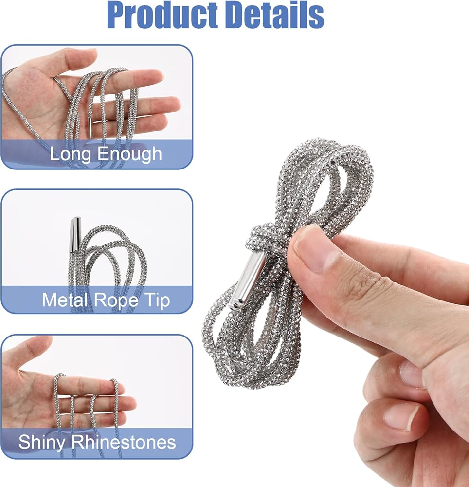 Premium Quality: Made with high-quality glass rhinestones attached to a strong cotton cord, these rhinestone shoe laces are designed to last and make your shoes look more elegant.