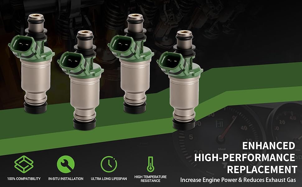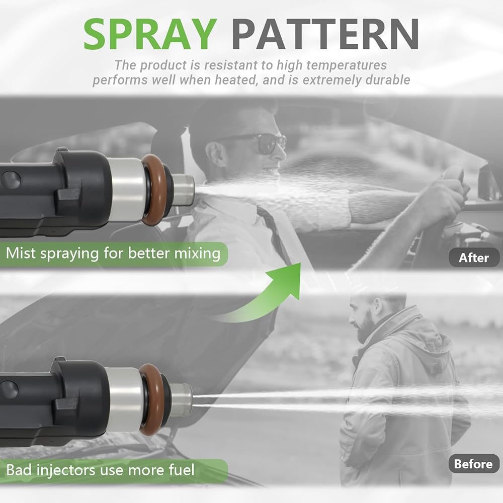 [Performance]: AUTOREBO fuel injectors crafted with corrosion/heat-resistant reinforced materials, and features high-temp o-rings for durability. It match/exceed OEM specs for precision fit. Engineered for quick installation, superior performance & lasting reliability under extreme conditions.