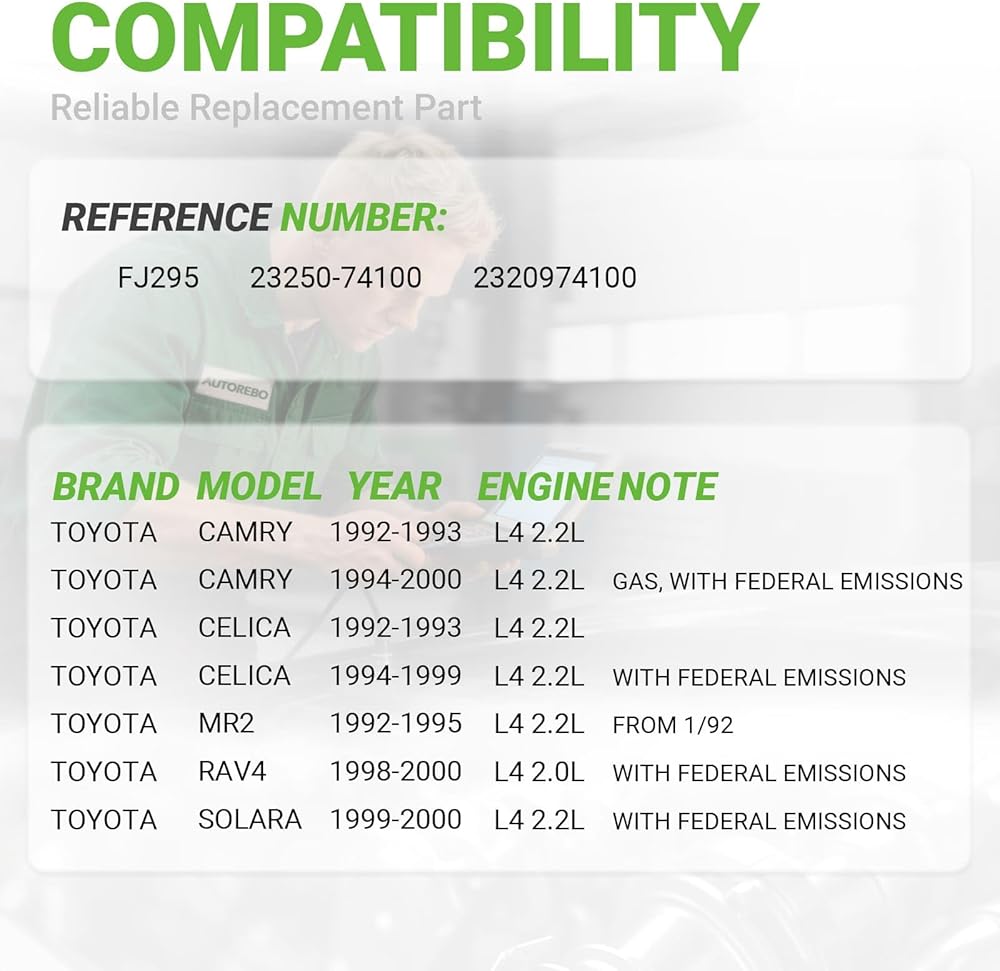 [Vehicle Fitment]: Compatible with Toyota Camry 1992-1993 L4 2.2L, Camry 1994-2000 L4 2.2L (GAS, with Federal Emissions, except California equipped), Celica 1992-1993 L4 2.2L, Celica 1994-1999 L4 2.2L (with Federal Emissions, except California equipped), MR2 1992-1992 L4 2.2L (From 1/92), MR2 1992-1992 L4 2.2L, RAV4 1998-2000 L4 2.0L (with Federal Emissions, except California equipped), Solara 1999-2000 L4 2.2L (with Federal Emissions, except California equipped)