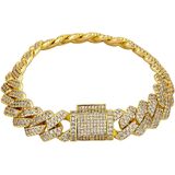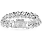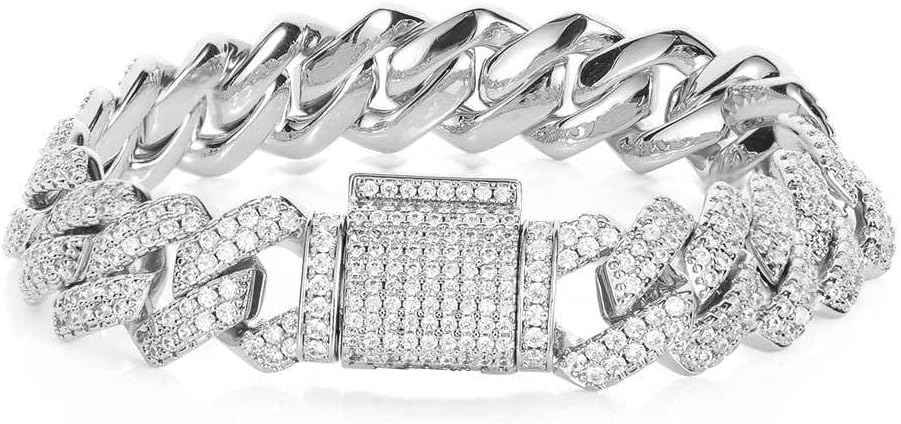 【Substantial Chain Design】This 14K Gold over 925 Silver 13mm Moissanite Bracelet features a classic Cuban link pattern with a secure box clasp. The densely set moissanite stones create consistent brilliance throughout the design, making it a distinguished accessory for formal and casual wear.