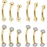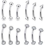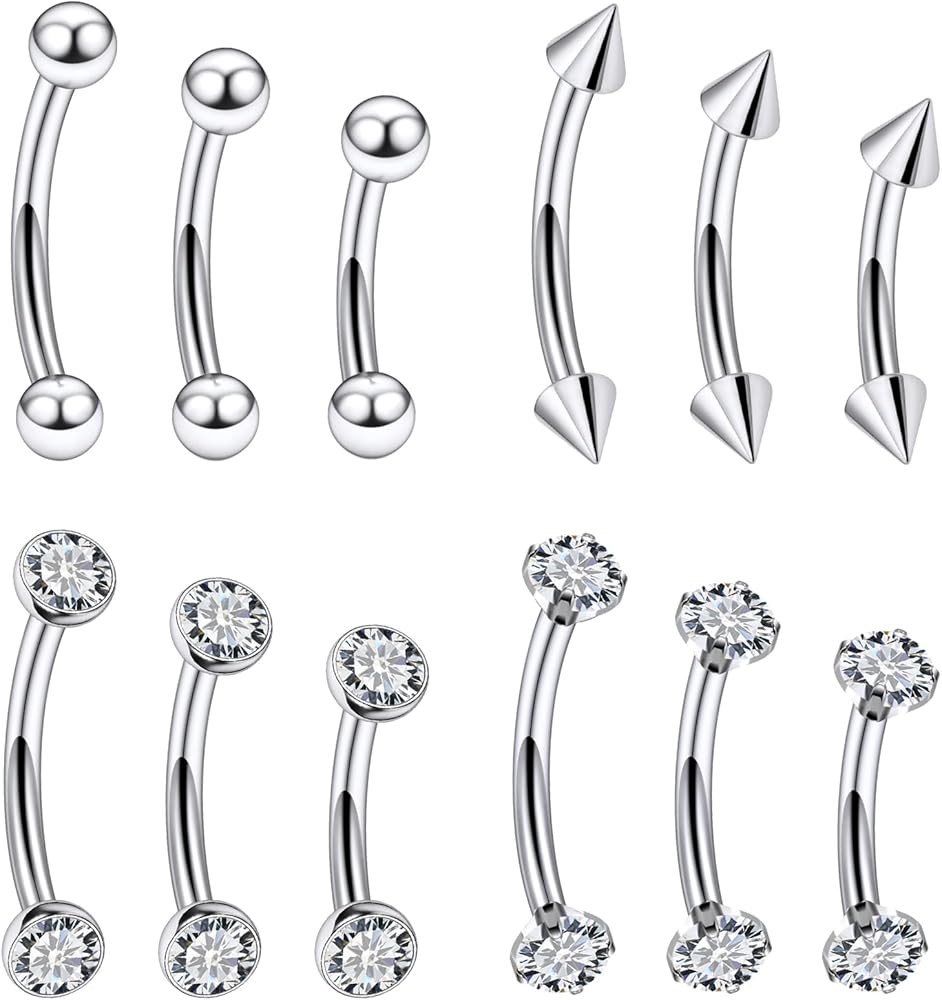 【Package Includes】: 12pcs eyebrow ring piercing jewelry (4 styles: spiked, ball, cz, crystal)6mm 8mm 10mm each 1 pcs