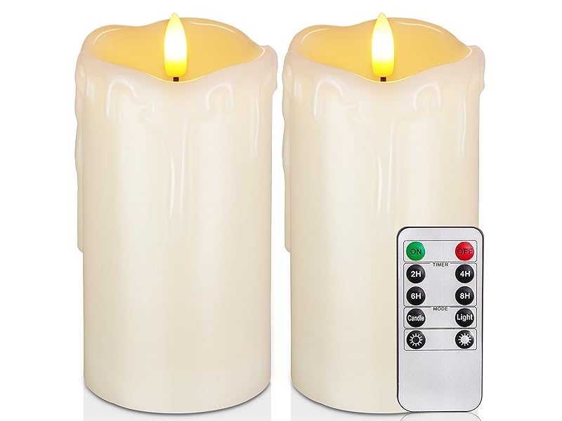 Homemory Dripping Wax Flameless Candles, Battery Operated Candles with Remote Control and Timers, LED Pillar Candles, Electric Fake Candles, 3" x 6", Set of 2