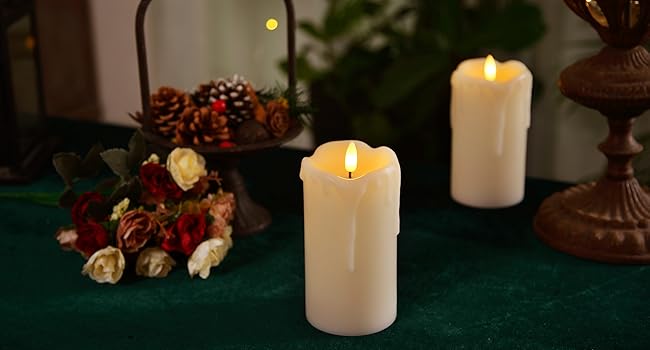 Realistic Dripping Wax Design: These Homemory flameless candles are made of real wax with a special dripping wax design, which mimicking the shape left by real burning wax, when the wick emits a flickering warm yellow light and shines on the wax, they seem like real candles.